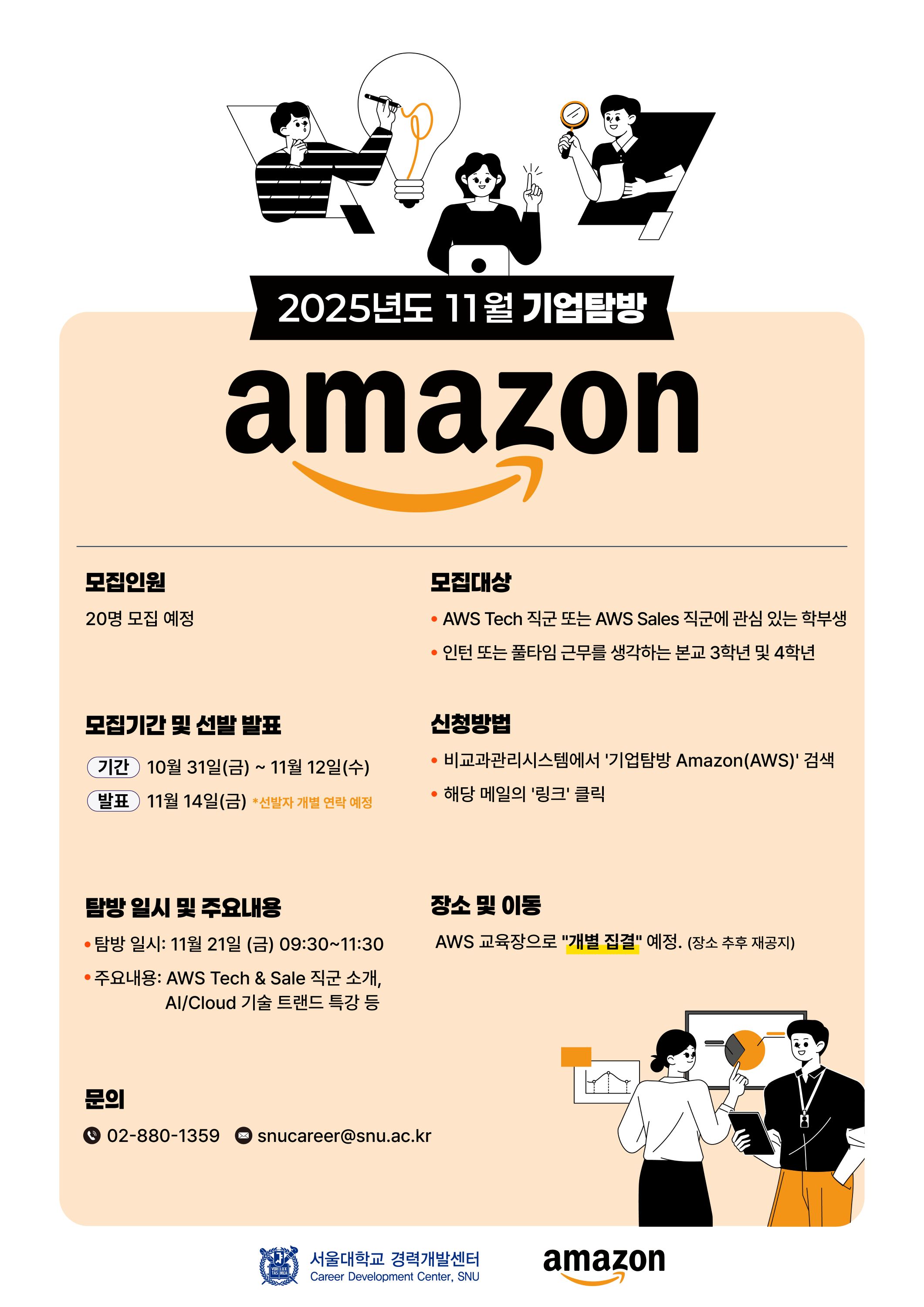 경력개발센터에서 "Amazon(AWS)"으로 기업탐방을 진행합니다.